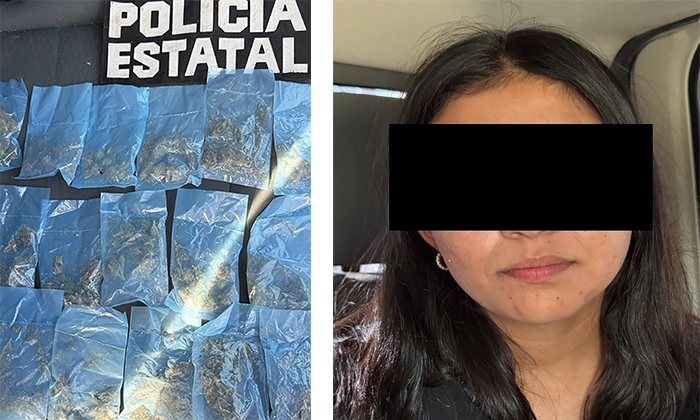 Elementos de la Policía Estatal; A María le aseguraron 16 envoltorios con aparente mariguana en un operativo en