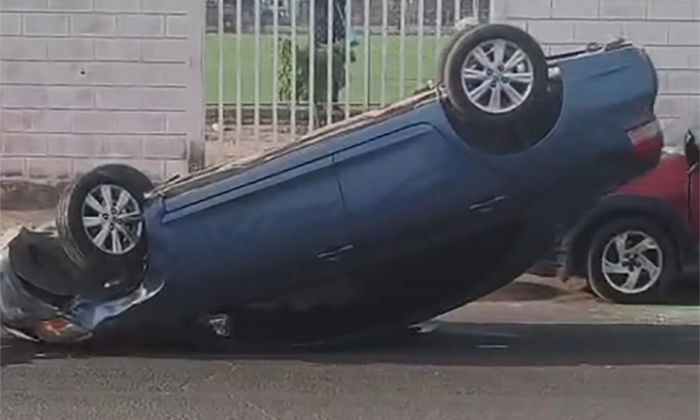 Impacta dos autos y vuelca en la colonia Álvaro Obregón