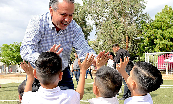 Entrega Toño Astiazarán cancha de futbol en la colonia Las Lomas