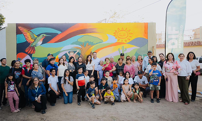 Las instalaciones del CIF Norte se convirtieron en un lienzo lleno de color y creatividad donde la niñez plasmó su talento en el mural comunitario inaugurado por el presidente municipal Antonio Astiazarán y su esposa Patricia Ruibal Zaragoza, presidenta de DIF Hermosillo, como parte de la conclusión de un taller en el que niñas y niños desarrollaron habilidades artísticas.
