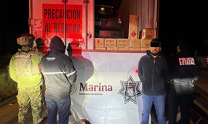 En boletín de prensa, la Segunda Región Naval con sede en el puerto de Guaymas, estableció que se logró la detención de un presunto infractor de la ley, así como el aseguramiento de la unidad de carga con un semirremolque en el que transportaban las tres unidades tipo sedán.