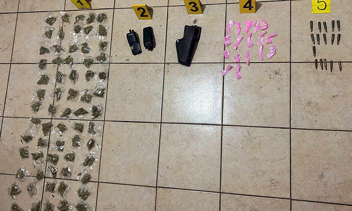 Durante la inspección, peritos de la Fiscalía procesaron la escena y documentaron los hallazgos, fijando y embalando como indicios 65 envoltorios de plástico con hierba verde con características físicas de mariguana y 17 envoltorios con sustancia granulada similar a crystal.