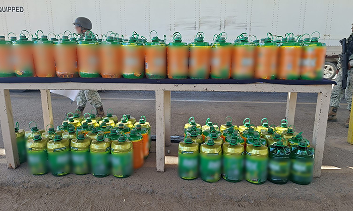 Un total de mil 71 litros de metanfetamina líquida contenida en 120 garrafones fueron asegurados por elementos del Ejército Mexicano en coordinación con la Guardia Nacional, como resultado de operativos conjuntos en el Puesto Militar de Seguridad Regional “Estación Doctor”, en San Luis Río Colorado.