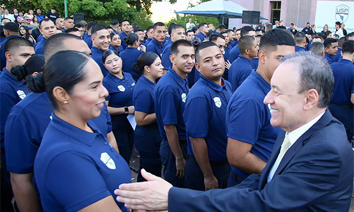 “Hoy vemos a jóvenes que no buscan solo un empleo, sino una causa. Mujeres y hombres que entienden que portar un uniforme es asumir una responsabilidad con la sociedad. En Sonora estamos formando policías con vocación, con valores y con preparación, porque la seguridad se construye con personas comprometidas con su comunidad”, expresó el gobernador Alfonso Durazo Montaño.
