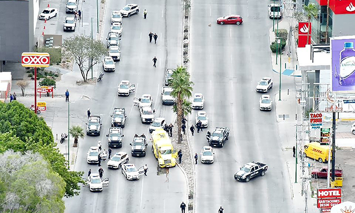 Fue a la altura del bulevar Eusebio Kino y la avenida José Gutiérrez en donde los agentes municipales y de la Policía Estatal de Seguridad Pública lo interceptaron y dispararon a las llantas para finalmente detener la pesada unidad, la cual estaba vacía.