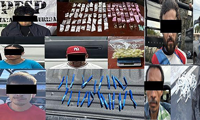 Elementos de la Policía Estatal de Seguridad Pública (PESP) capturaron a seis personas en posesión de cientos de dosis de cocaína, crystal y mariguana, en operativos efectuados en Hermosillo y Ciudad Obregón.