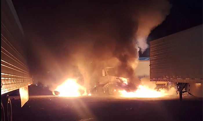El llegar a un taller especializado en vehículos pesados, ubicado en la calle Roberto Mejía entre Agustín del Campo y Galilea, en la colonia Luis Donaldo Colosio, encontraron que la cabina de un tractocamión estaba en llamas, con riesgo a extenderse a otras unidades, por lo que los elementos de Bomberos de inmediato empezaron las labores de contención.