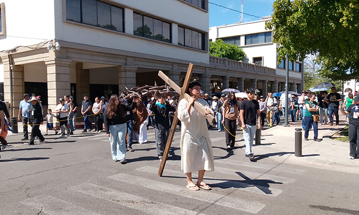 Protagonizado por jóvenes de catecismo; Las y los jóvenes representaron la pasión y muerte de Jesús ante familiares y feligreses que se reunieron para realizar el recorrido en los respectivos templos