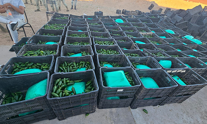 Durante la inspección con los equipos tecnológicos, las cajas de chile registraron inconsistencias, por lo que los soldados realizaron una revisión manual, localizando 235 paquetes de metanfetamina de cinco kilos cada uno que dieron un total de mil 175 kilos.