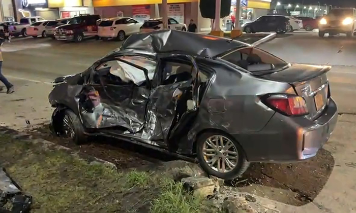 Una mujer y su hija de 13 años, fueron llevadas a un hospital con pronóstico reservado, tras el impacto contra un pick up que terminó arriba del camellón del bulevar Navarrete
