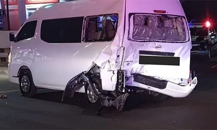 Una unidad de transporte de personal fue golpeada por alcance por un sedán que registró severos daños y los tripulantes resultaron con lesiones de gravedad