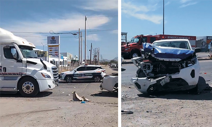 El percance ocurrió en la confluencia del bulevar Ganaderos o Manlio Fabio Beltrones y la carretera a Mazatán, frente a una plaza comercial.