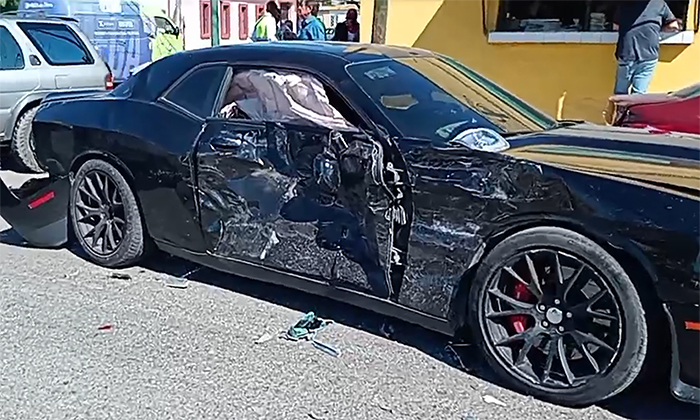 De acuerdo con testigos, la camioneta de la marca Nissan, línea Pathfinder, color plata, con placas de afiliación, circulaba de norte a sur e impactó el automóvil deportivo de la marca Dodge, línea Challenger, color negro que transitaba de poniente a oriente.