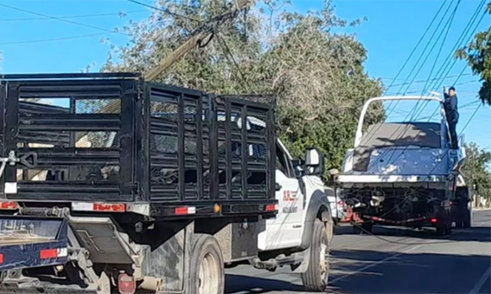 Un vehículo que remolcaba una lancha derribó un poste de telefonía tras jalar el cableado cuando transitaba por calles de la colonia San Benito.
