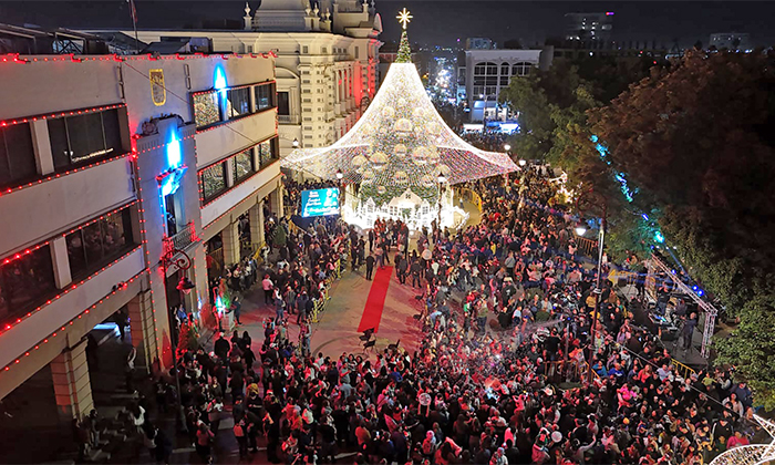 El encendido se suma a la iluminación navideña que el Ayuntamiento de Hermosillo colocó en el parque Madero y Jardín Juárez.