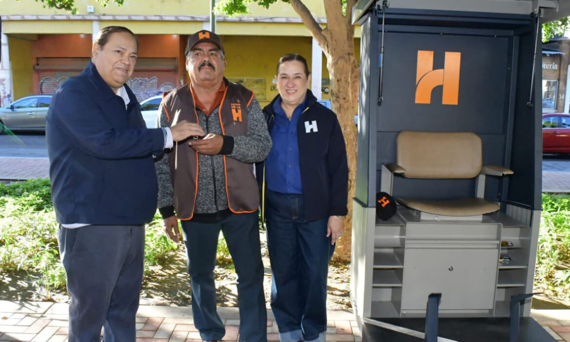 Quienes viven del oficio de aseo de zapatos en el bulevar Hidalgo y Mercado Municipal, recibieron de parte del presidente municipal Antonio Astiazarán una estación de trabajo digna y funcional, así como equipamiento que los distingue como Boleros de la H.