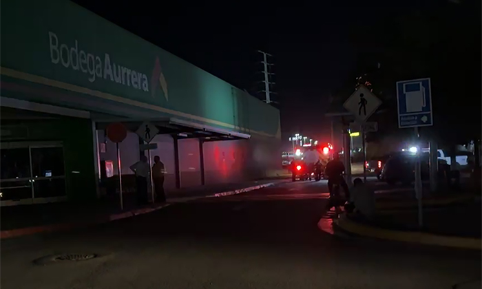 El supermercado Bodega Aurrerá se quedó a oscuras luego de que una paloma al parecer se estrelló contra el transformador lo que provocó un corto circuito y gran movilización de cuerpos de auxilio