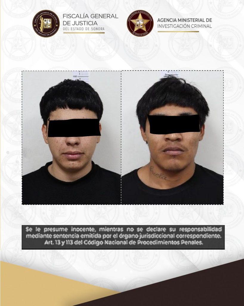 Cajeme, Sonora, 29 de enero de 2026.– Durante la audiencia, las autoridades judiciales vincularon a proceso a Carlos Anselmo “N” y Josué Noé “N”, tras confirmar con las pruebas correspondientes que pertenecen a un grupo delictivo que operaba en el municipio de Cajeme, y que son probables responsables de los delitos de desaparición cometida con resultado de muerte y asociación delictuosa.