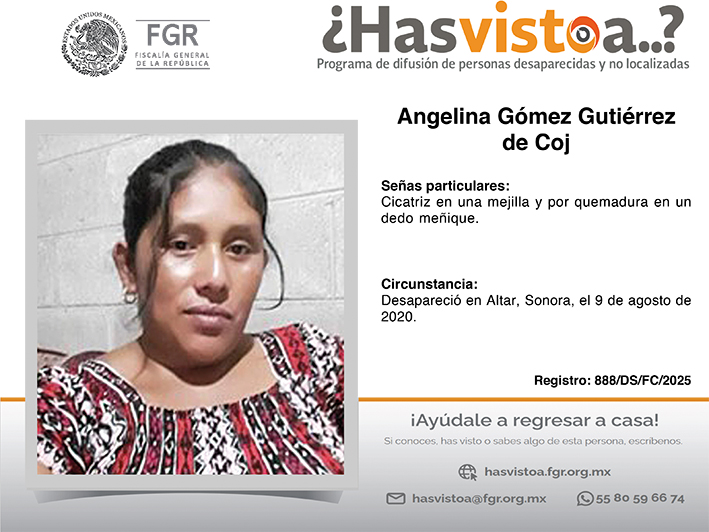 ¿Has visto a: Angelina Gómez Gutiérrez?
