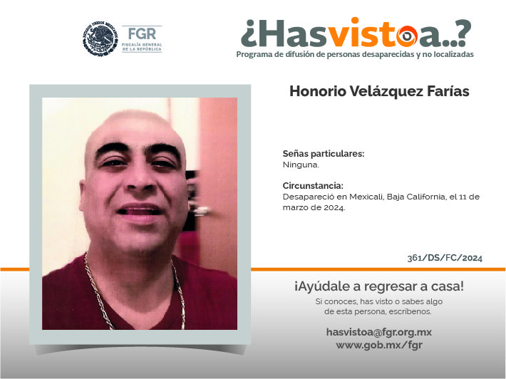 ¿Has visto a: Honorio Velázquez Farías?
