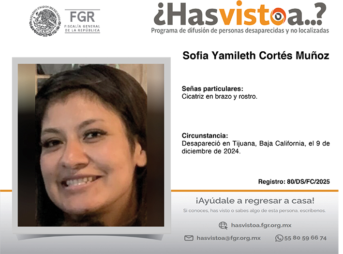 ¿Has visto a: Sofia Yamileth Cortés Muñoz?