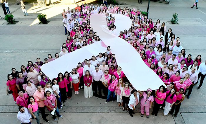 Realizan lazo en la explanada frente a Palacio Municipal; Cada 19 de octubre se conmemora el Día Mundial de la Lucha contra el Cáncer de Mama, por lo que llamó a tomar conciencia sobre la importancia de practicarse estudios a tiempo