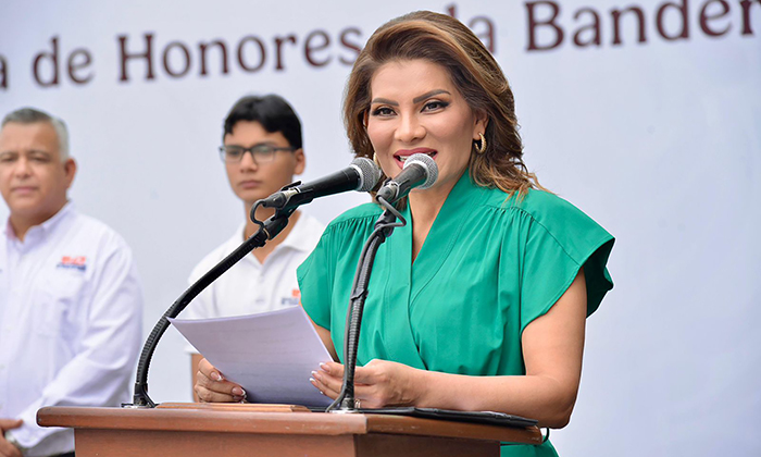 Lo anterior luego de haber formado parte de la ceremonia de honores a la Bandera, junto a representantes de la Cuarta Zona Militar, servidoras y servidores públicos del Gobierno de Sonora, y la comunidad escolar del Colegio de Bachilleres Plantel Villa de Seris, donde la legisladora federal se expresó sobre la importancia de honrar a los símbolos patrios y conocer la historia de México.