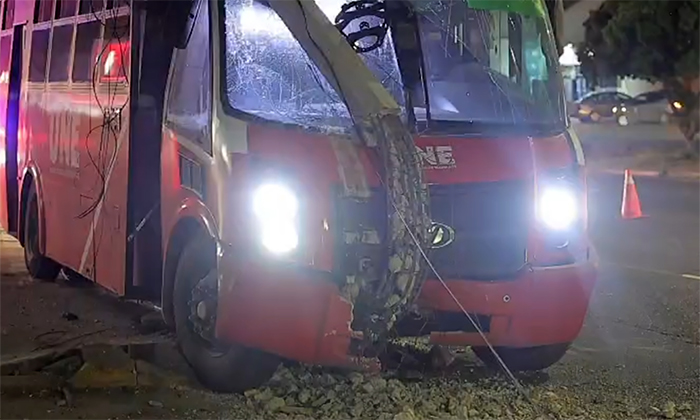 Al menos doce personas lesionadas, dejó el choque de un camión urbano de la ruta 4 Línea Periférico contra un poste de la Comisión Federal de Electricidad, el cual quedó totalmente doblado sobre la unidad, en la colonia Emiliano Zapata, luego de que el operador sufrió una crisis convulsiva.