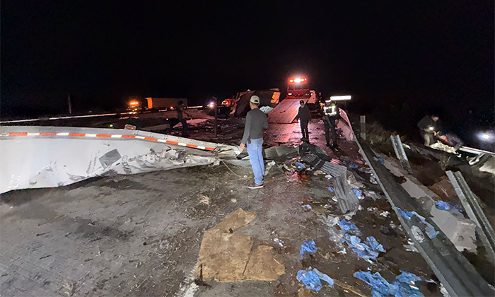 Se informó que el accidente se reportó alrededor de las 18:50 horas del pasado domingo, cuando el tráiler, circulaba en dirección de sur a norte sobre la carretera federal, al parecer a exceso de velocidad, y al llegar al kilómetro señalado, el chofer perdió el control del volante.
