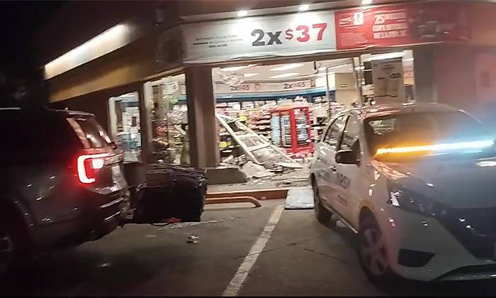 Fue a esa hora cuando la camioneta de color gris con placas del sur del país, se metió de lleno en la tienda de conveniencia de la cadena Oxxo, en donde derribó la puerta y ventana de cristal.