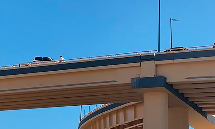 Posteriormente descendió de la unidad y rápidamente se subió al borde del puente y se arrojó desde alrededor de 40 metros.